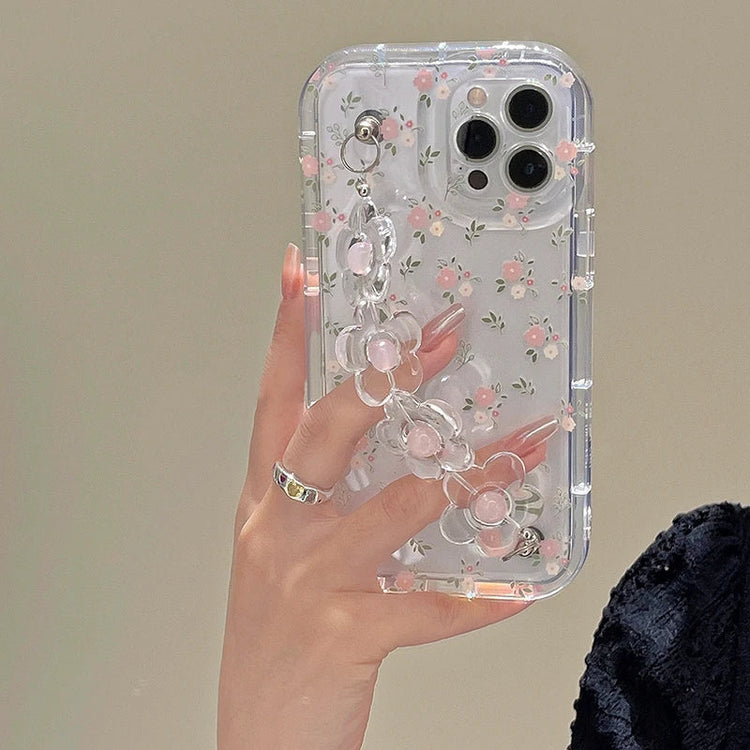 iphone Cute 3D Flower Wrist Phone Chain Soft Phone Case