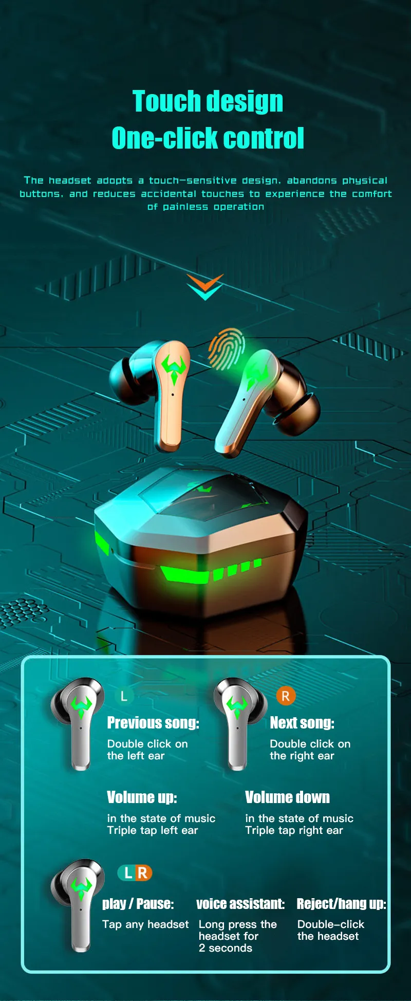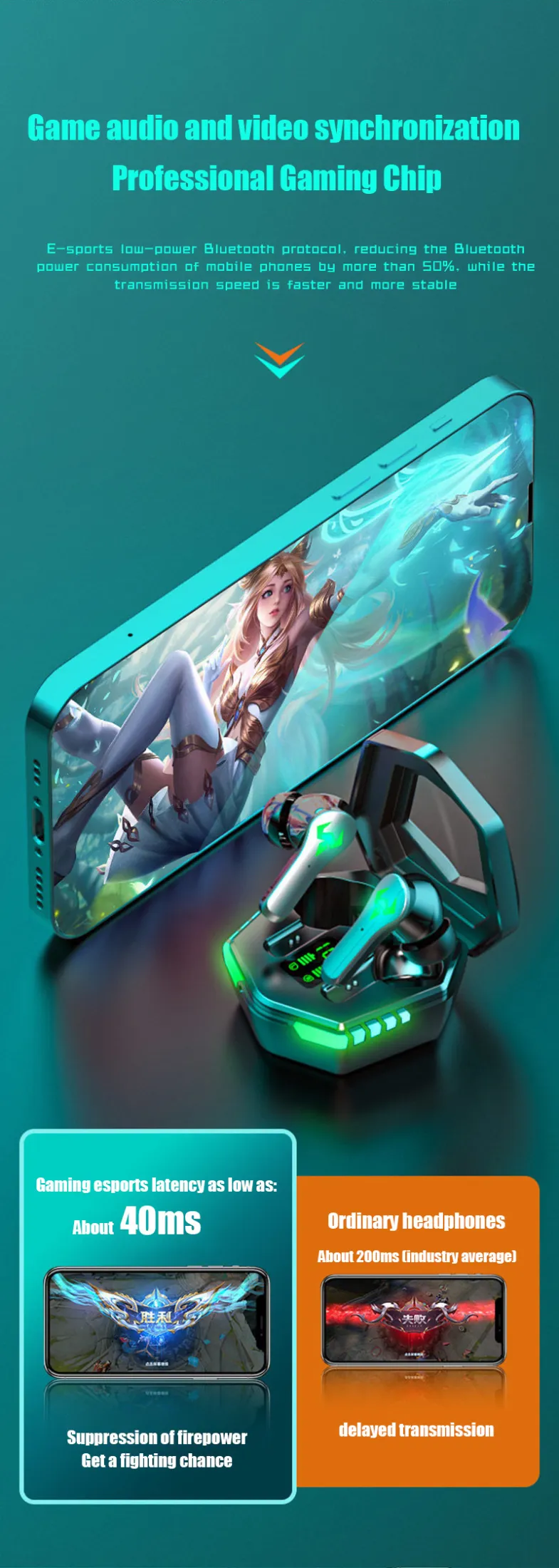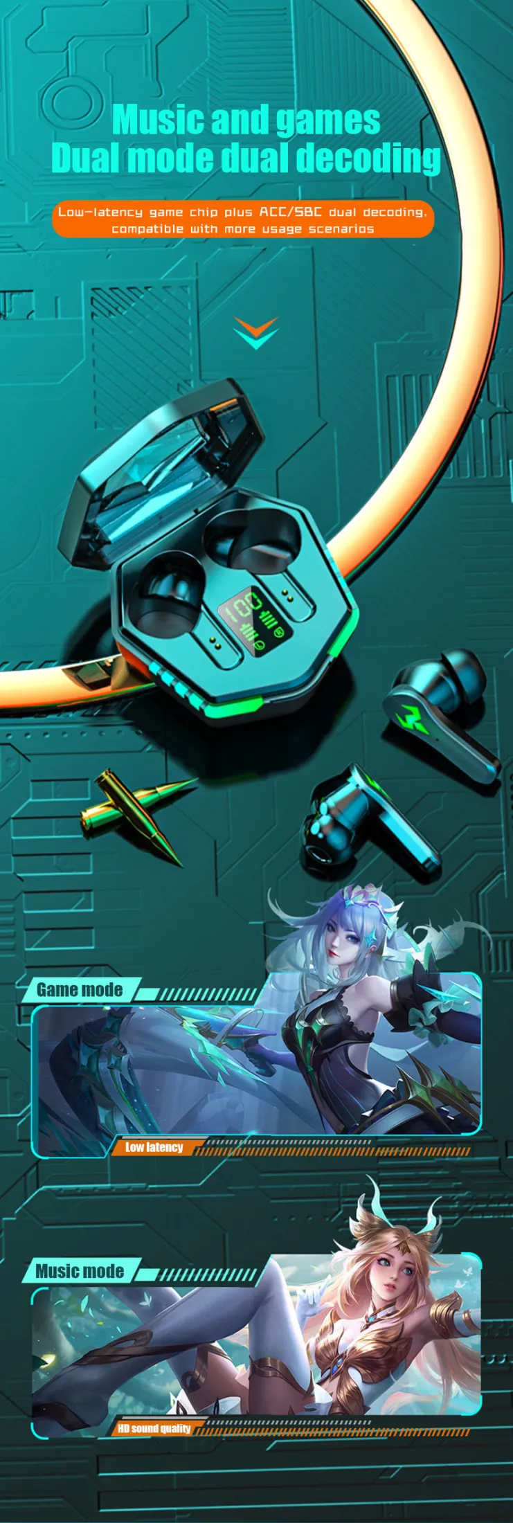 Specifications of N35 Gaming Headsets Low Latency Earphone True Wireless Stereo (5.2V) Headphone Earbuds With Mic audiophonos gamer
